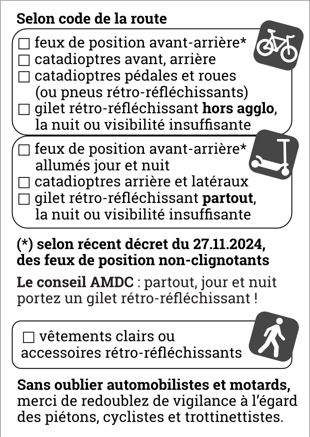 Et n'oubliez pas le conseil AMDC : partout, jour et nuit soyez rétro-réfléchissant-e !